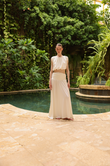 A high-waisted, draped maxi skirt designed for graceful movement and timeless elegance. The soft gathering at the waistband enhances the waistline while allowing the skirt to flow effortlessly with every step.